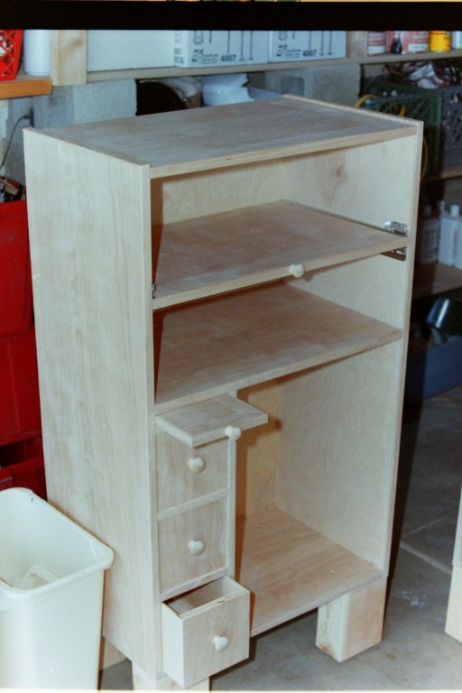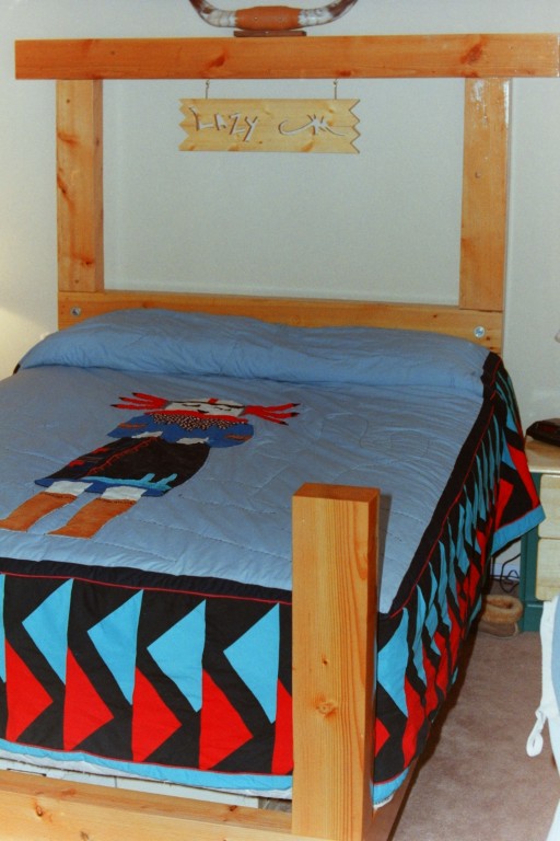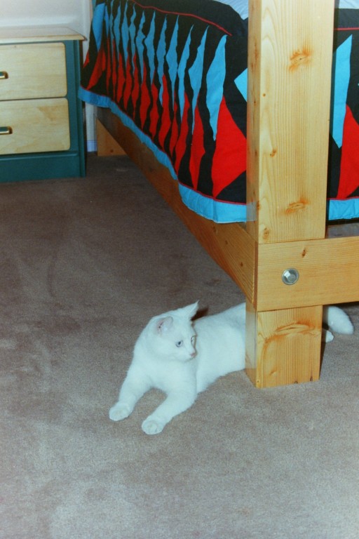 Built a fancy stereo and TV cabinet for the family room, and with recycled timbers built us a 4 post bed. That little white kitty , his name was Boo-boo after the ghost.