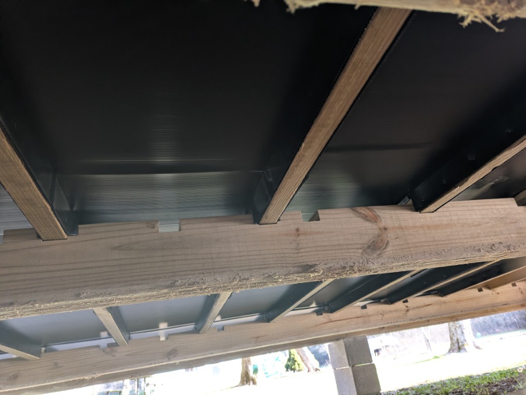 I got half of the underside and all of the ceiling completed before extremme cold and bad weather rolled in here in January, and we are just waiting for it to warm up, to start again.